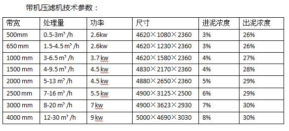 带式压滤机型号大全